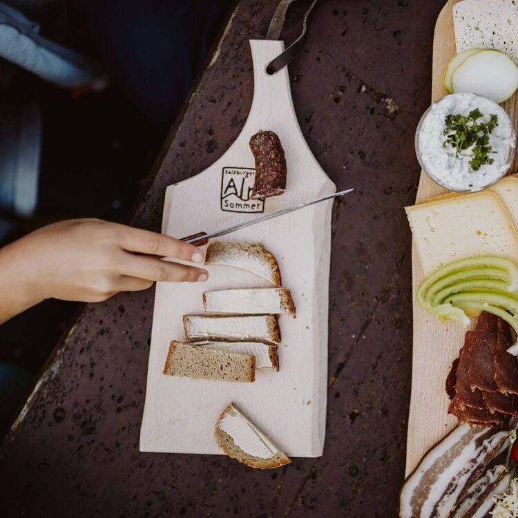 Die Sonne im Gesicht, ein paar Höhenmeter in den Beinen, die nächsten Gipfel vor Augen und eine Brettljause vor der Nase: eine wahre Wohltat. Ganz besonders, wenn wir im Salzburger Land Almsommer unterwegs sind. Zum Beispiel im Gebiet der Bischofsmütze, unweit unseres Alpendorfs Dachstein West in Annaberg im Lammertal.