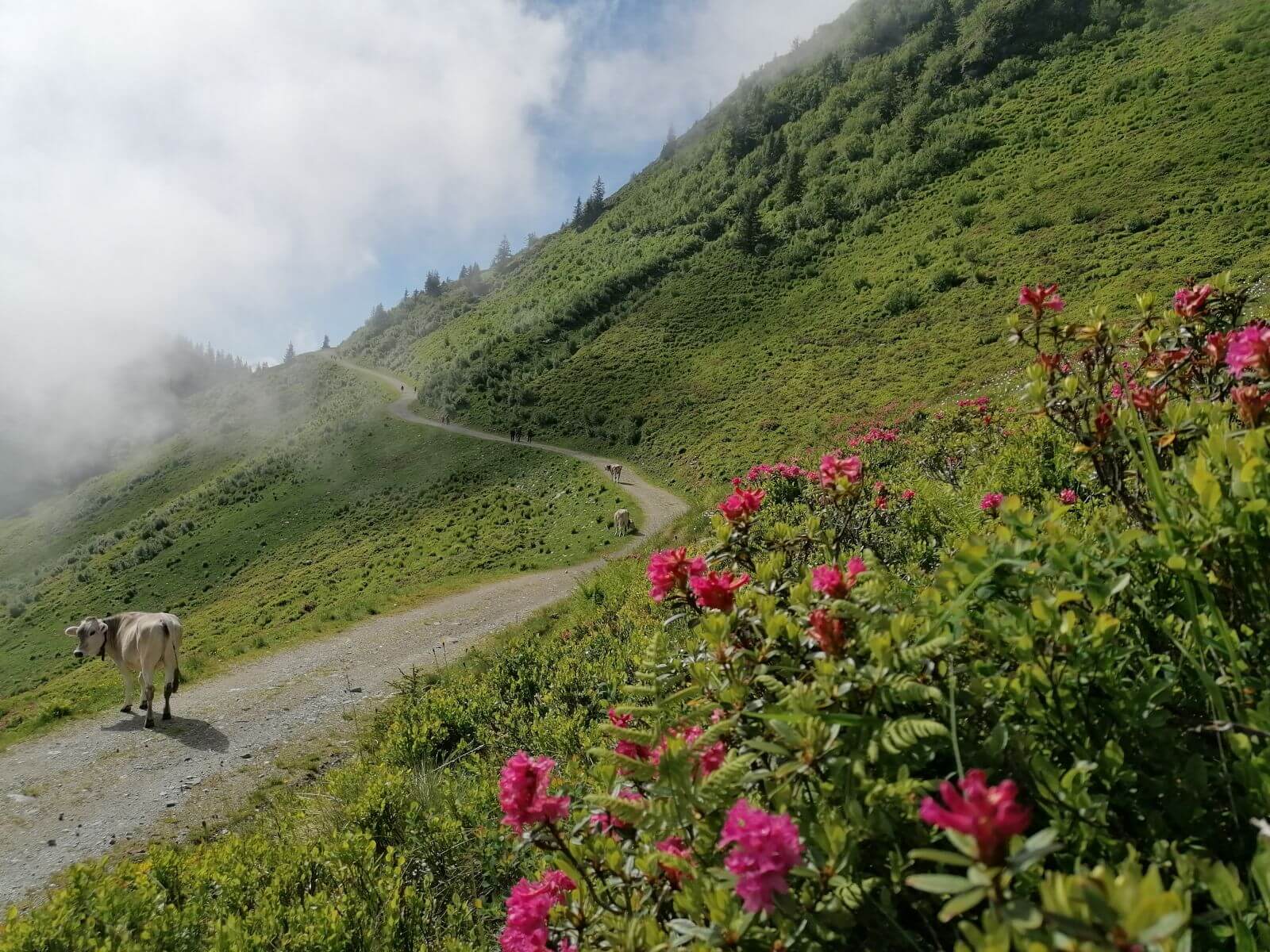 Honestly, after enjoying an extended break on the summit, it isn’t easy to just pick up and move along. We quickly enter our names in the summit logbook, enjoy a final 360° view, then backtrack via the same route as far as the Brechhornhaus. From there, we follow the forestry lane to the Fleidlingalm, the Talkaser and the mountain terminal of the Alpenrosenbahn. Another option: the Waterfall Path to the mid-station and the Holzwurmweg dropping down to the valley station.