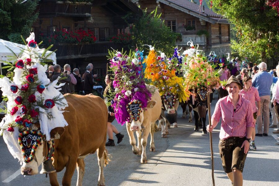 Wenn die Temperaturen im Spätsommer fallen, kehren die Kühe von den Almweiden zurück ins Tal. Almabtriebe sind traditionelle Veranstaltungen im Alpenraum, die das Ende des Almsommers markieren. Oft ist ein Almabtrieb mit einem großen Herbstfest verbunden, wie im Brixental in den Kitzbüheler Alpen in Tirol.