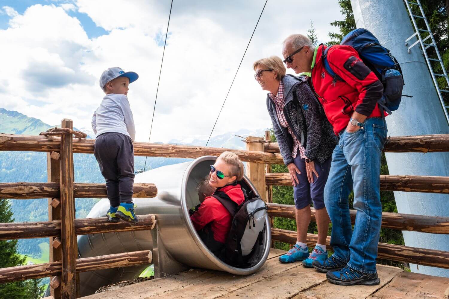 Der Rutschenweg in der Wildkogel-Arena in Neukirchen ist ein echtes Highlight – nicht nur für Kinder. Der beste Beweis dafür sind Oma und Opa, die wagemutig in der ersten Röhrenrutsche, der „Liesl“, verschwinden. Ein lauter Juchitzer, dann sind die Enkerl an der Reihe.