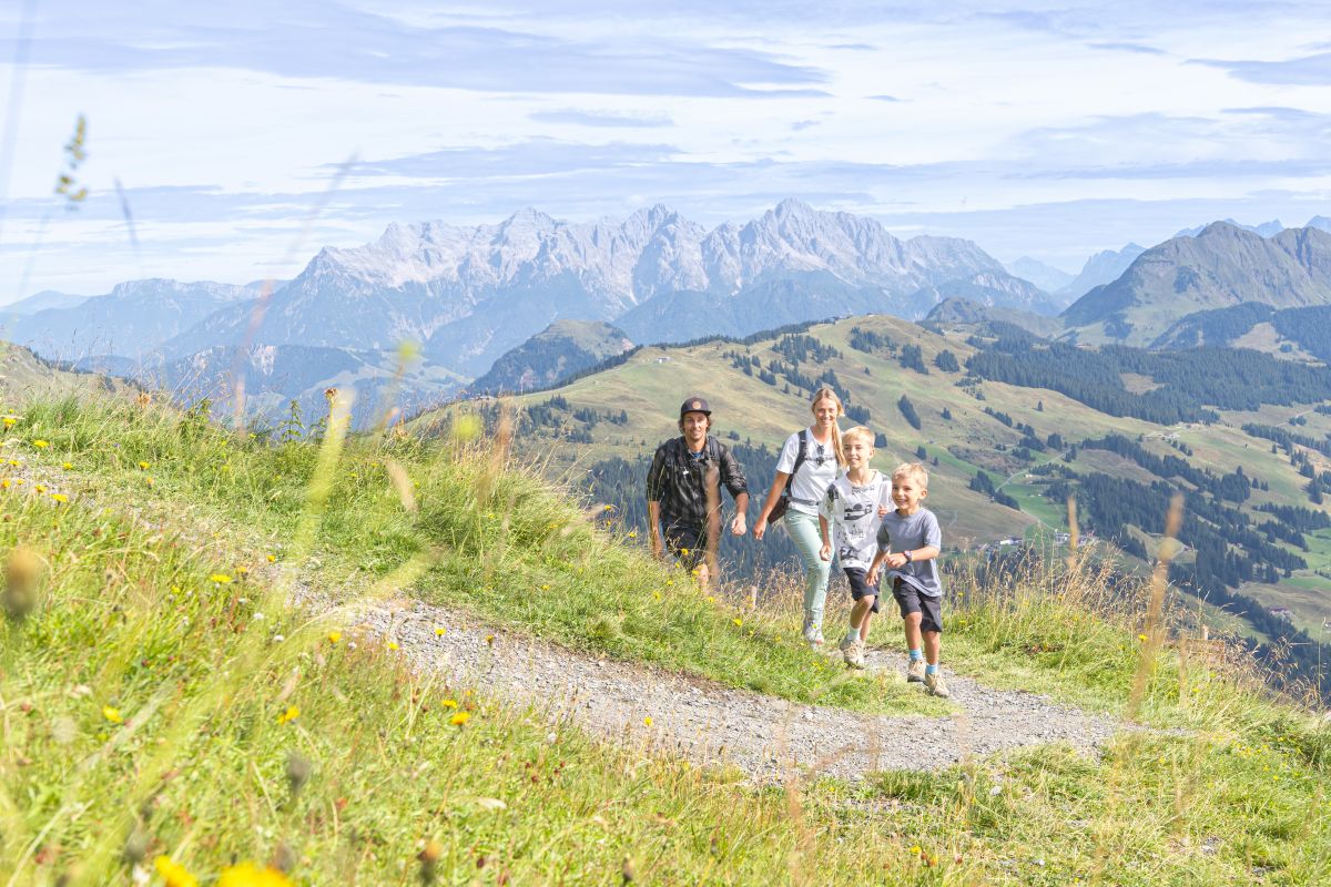 Saalbach Hinterglemm hat rund 400 km markierte Wanderwege und Trails zu bieten. Damit nicht genug: Mit der Joker Card Saalbach bringt dich die Frühfahrt des Schattberg X-press´ (Montag bis Freitag, 7:30 – 7:40 Uhr) zum Startpunkt des Pinzgauer Spaziergangs (18 km, 650 hm) und der 7 Summits-Tour (24 km, 1.450 hm). Diese beiden herausfordernden Wanderungen gehören mit dem Home of Lässig Walk zur Saalbach Wander Challenge.