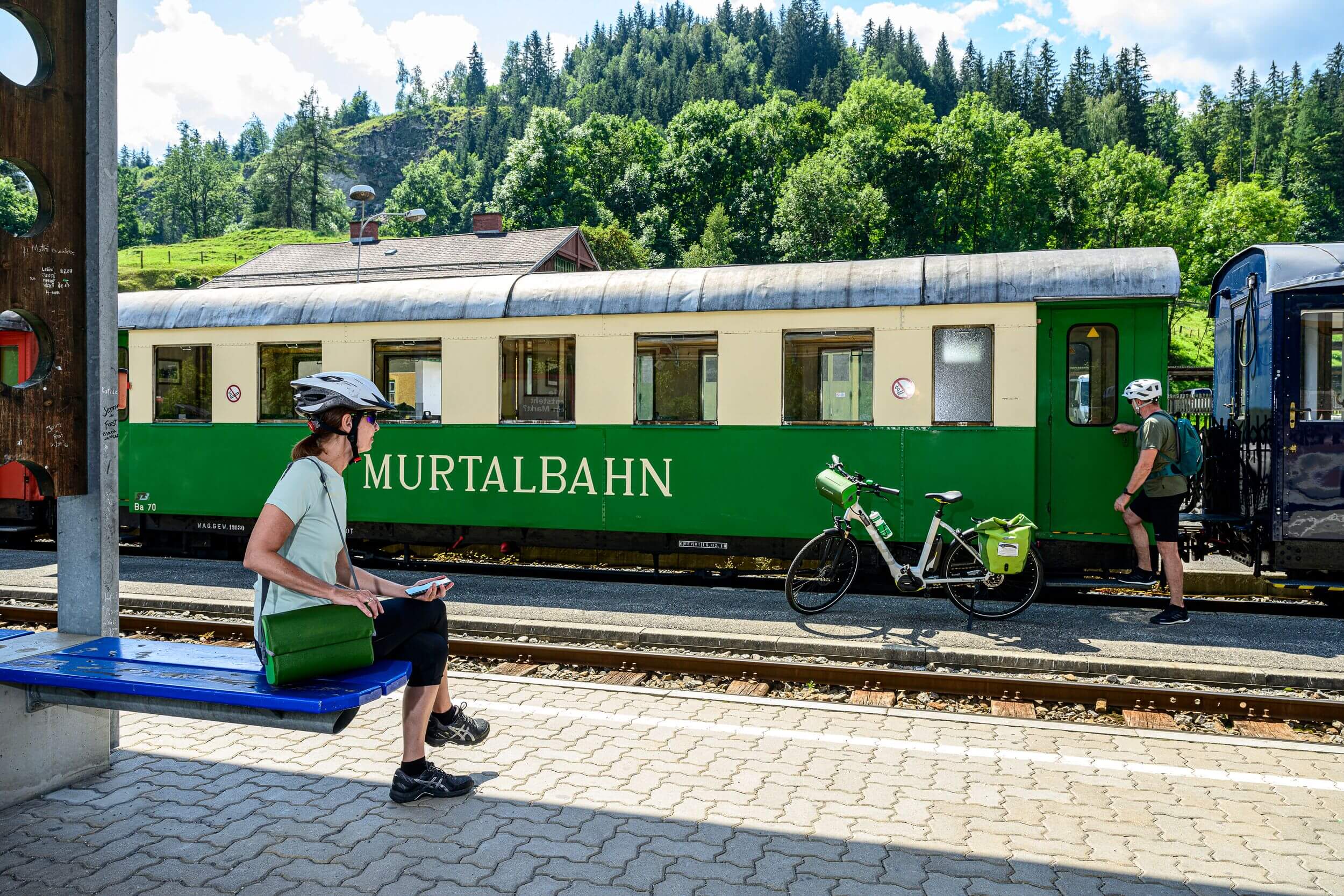 Wer sich den Hinweg erleichtern möchte, startet direkt bei einem der ALPS RESORTS in St. Lorenzen und fährt mit der Murtalbahn entspannt nach Tamsweg. Von dort führt dich die rund 30 Kilometer lange Etappe auf dem Murradweg flussabwärts zurück zu deiner Unterkunft. Die Mitnahme von Fahrrädern kostet nur 3,50 Euro pro Tag. Und das Beste: Mit der Murau Gästecard, die in deiner Buchung inkludiert ist, ist die Zugfahrt kostenlos.