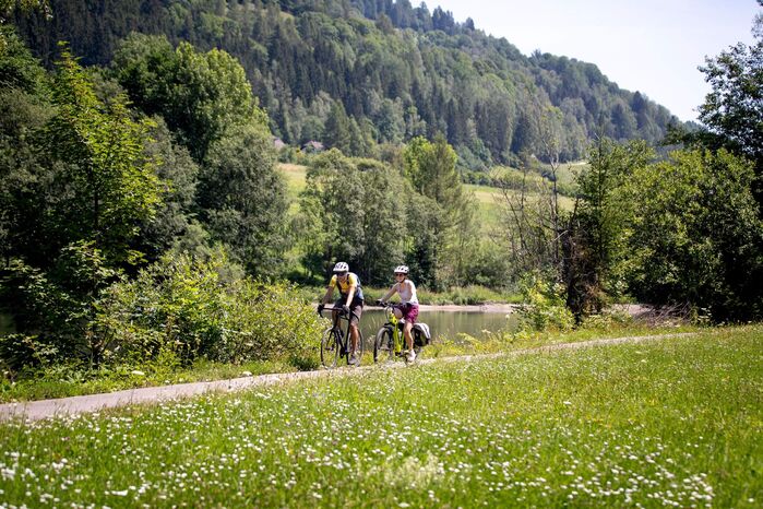 Diese rund 53 Kilometer lange Etappe ist ideal für eine entspannte Radtour. Der Weg ist durchgehend gut beschildert und asphaltiert, das sanfte Gefälle macht ihn auch für Familien mit Kindern gut befahrbar. Gleichzeitig bietet der Abschnitt zahlreiche Möglichkeiten zum Entdecken und Genießen. Entlang der Strecke erwarten dich diese Highlights: