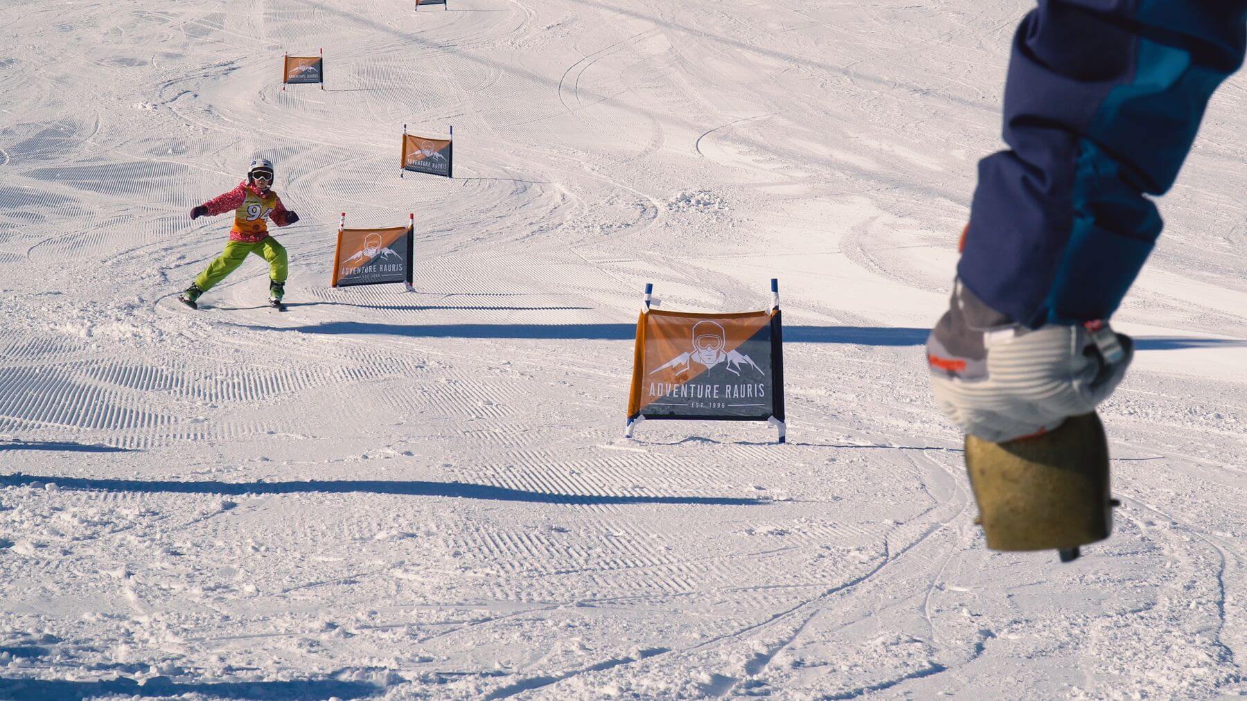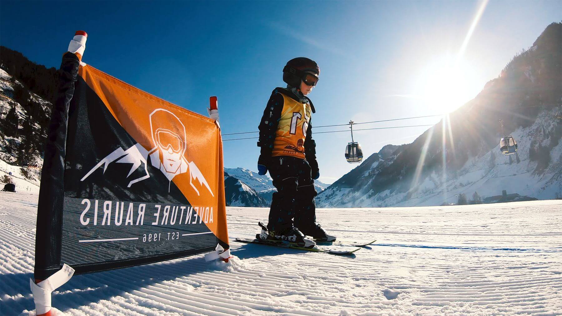 Idealerweise verfügt die gebuchte Skischule über ein Kinderübungsgelände. Das Kinderland der Skischule Adventure Rauris liegt direkt am Carpe Solem Rauris, an der Talstation der Rauriser Hochalmbahnen. Als Aufstiegshilfe dienen ein Zauberteppich und ein Übungslift, das erspart das „Auffibredln“ vorm „Owiwedln“. Kegeln, Torstangen, lustige Figuren, Flaggen und Matten dienen als Hilfsmittel und werden im Skiunterricht eingebaut. „Je nach Schneelage bauen wir Wellenbahnen, Tretorgeln und sogar kleine Schanzen, um die Balance, das Gleichgewicht – und nicht zuletzt den Mut der Skizwerge zu trainieren.“
