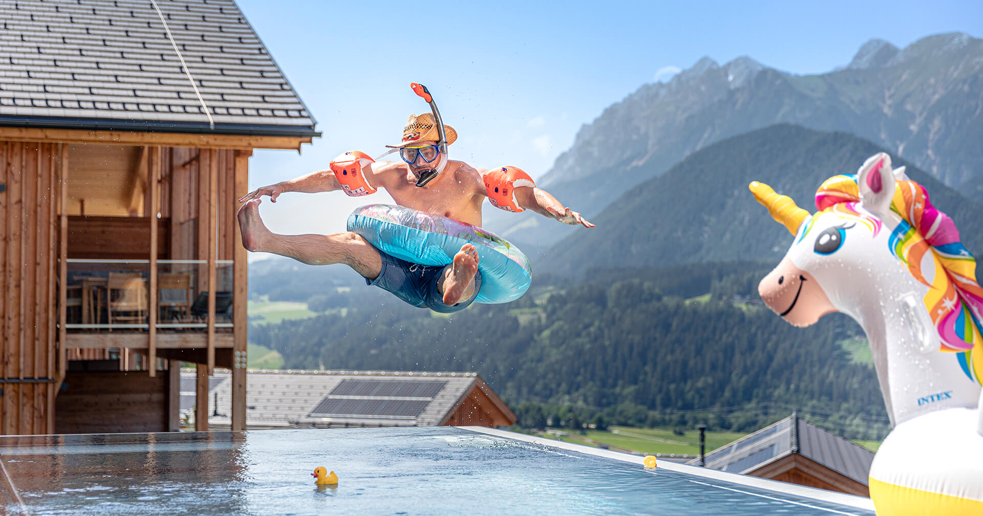 Ob Swim Spa, Indoor- oder Outdoor-Whirlpool, in unseren Alpenchalets Reiteralm in Pichl bei Schladming lockt wohltuendes Wasser in allen Facetten. Wie der Name bereits vermuten lässt, befassen sich auch unsere Kreischberg Pool Villas & Penthouses mit dem blauen Element, das du in Form beheizter Pools und Außenbadewannen oder in Form einer Finnischen Sauna genießen kannst. Über ähnliche Annehmlichkeiten verfügen auch die direkt an der Skipiste gelegenen Kreischberg Chalets. Ebenso punkten die luxuriös ausgestatteten Chalets im Feriendorf Murau mit privaten Pools und Spa-Bereichen im Innen- und Außenbereich. Genieße den Sternenhimmel über den Berggipfel doch einmal von deinem Whirlpool aus! Für Momente, die du garantiert nie vergessen wirst.