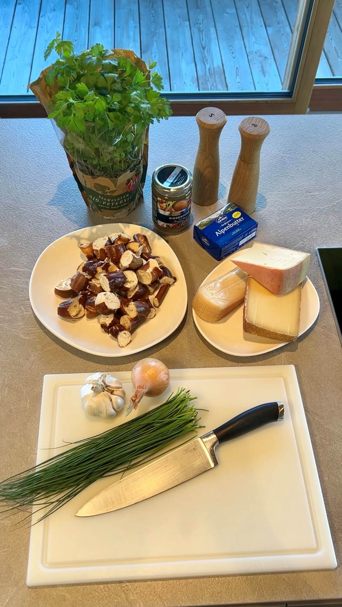 Würziger Bergkäse bringt besonders viel Geschmack. Alternativ schmecken auch Emmentaler, Almkäse oder eine Mischung aus verschiedenen Käsesorten sehr gut.