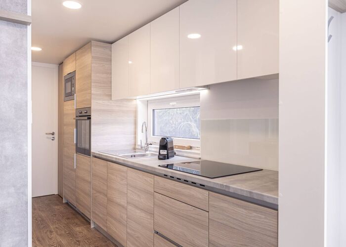 Etwas mehr Platz hast du in den Glamping Chalets. Komfortabel ausgestattet mit bis zu 60 m² Wohnfläche bieten sie Platz für bis zu 6 Personen. Die Chalets verfügen zudem über 2–3 Schlafzimmer und über einen offenen Wohn-Koch-Essbereich mit voll ausgestatteter Küche. Hinzu kommt ein modernes Badezimmer sowie eine gemütliche Terrasse.