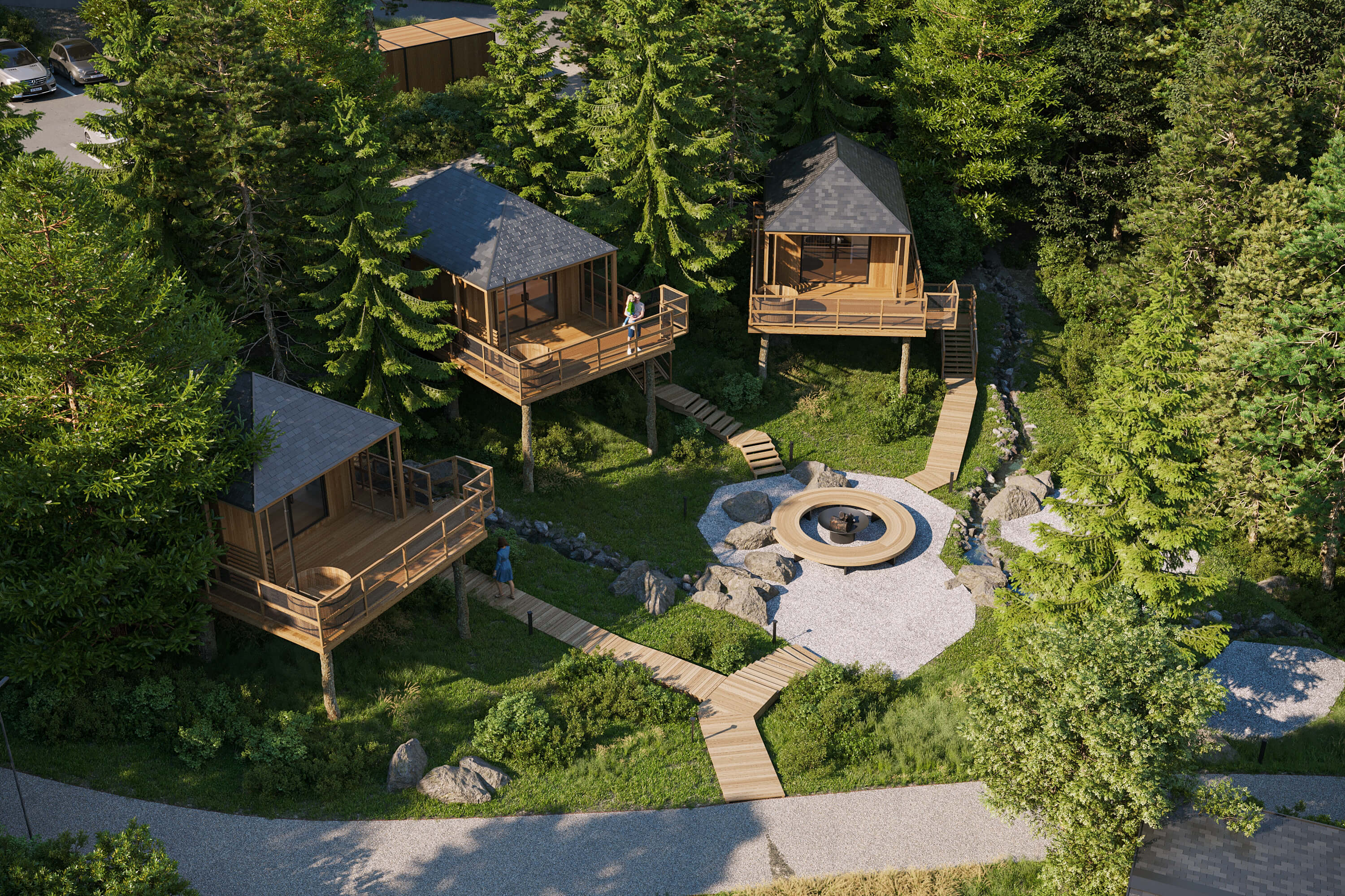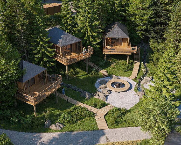 In den Baumhäusern erwartet dich ein unvergessliches Abenteuer in luftiger Höhe. Mit einer Fläche von 22 m² bieten die einzigartigen Baumhäuser Platz für 2 Erwachsene und 1 Kind. Genieße die besondere Atmosphäre am Waldrand, während du den freien Blick auf die umliegende Bergwelt von deinem Balkon aus bewunderst. Die komfortable Ausstattung mit Schlafzimmer, Wohnraum, voll ausgestatteter Küchenzeile sowie Badezimmer mit Dusche/WC bietet alles, was du für einen angenehmen Aufenthalt benötigst.