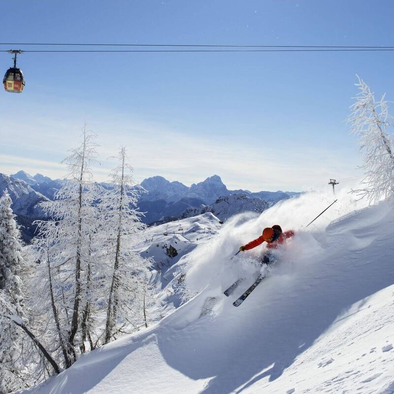Whether you are traveling with children or looking for new sporting challenges, you are guaranteed to find the right ski region in Austria, for example in the Ski Amadé ski region, which stretches over 760 km between Styria and the Salzburger Land and also includes the popular 4-mountain ski area in Schladming. Whether practice slopes, snow parks, fun slopes, blue and black pistes - there is something for everyone here. You'll also see top athletes skiing down the slopes.