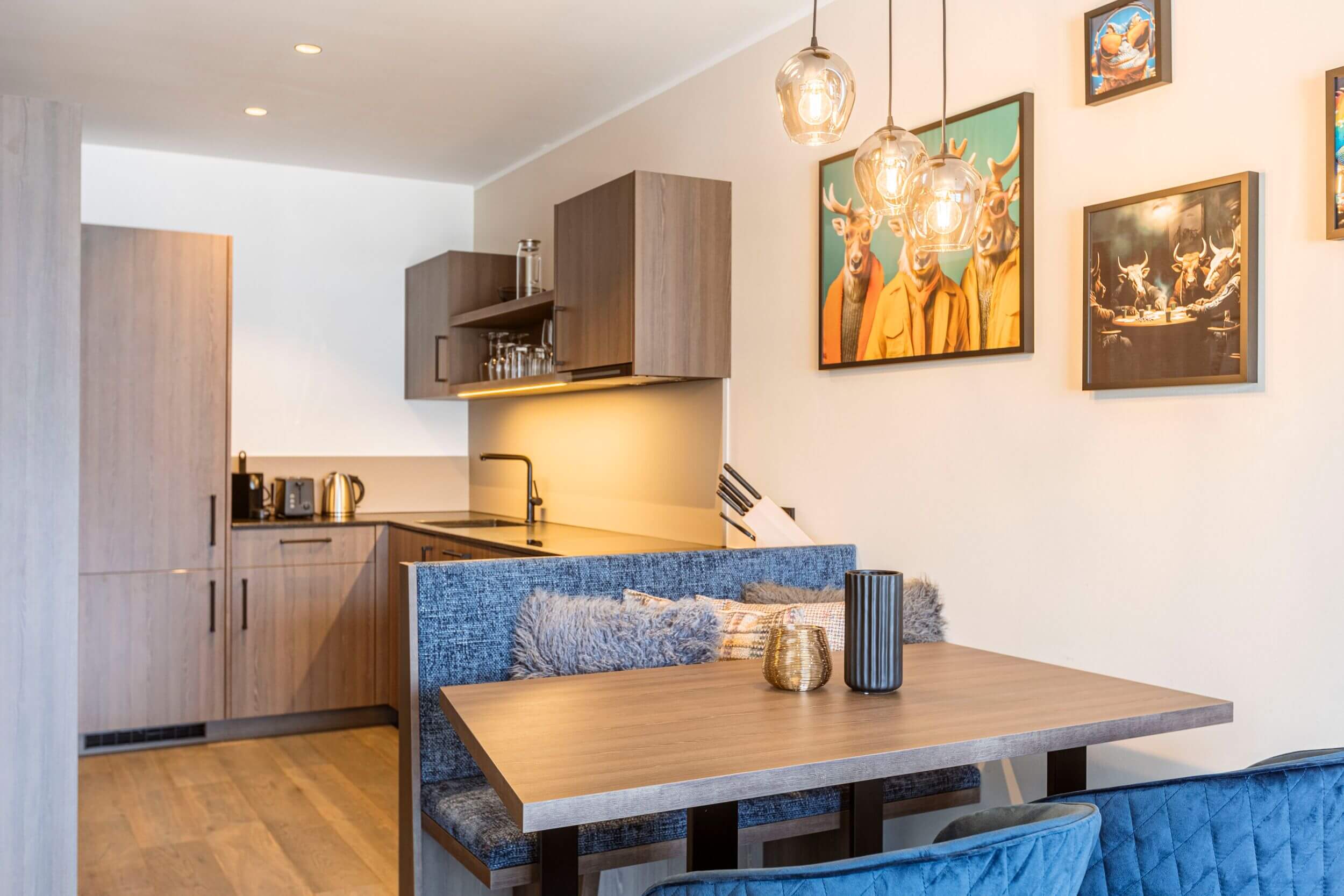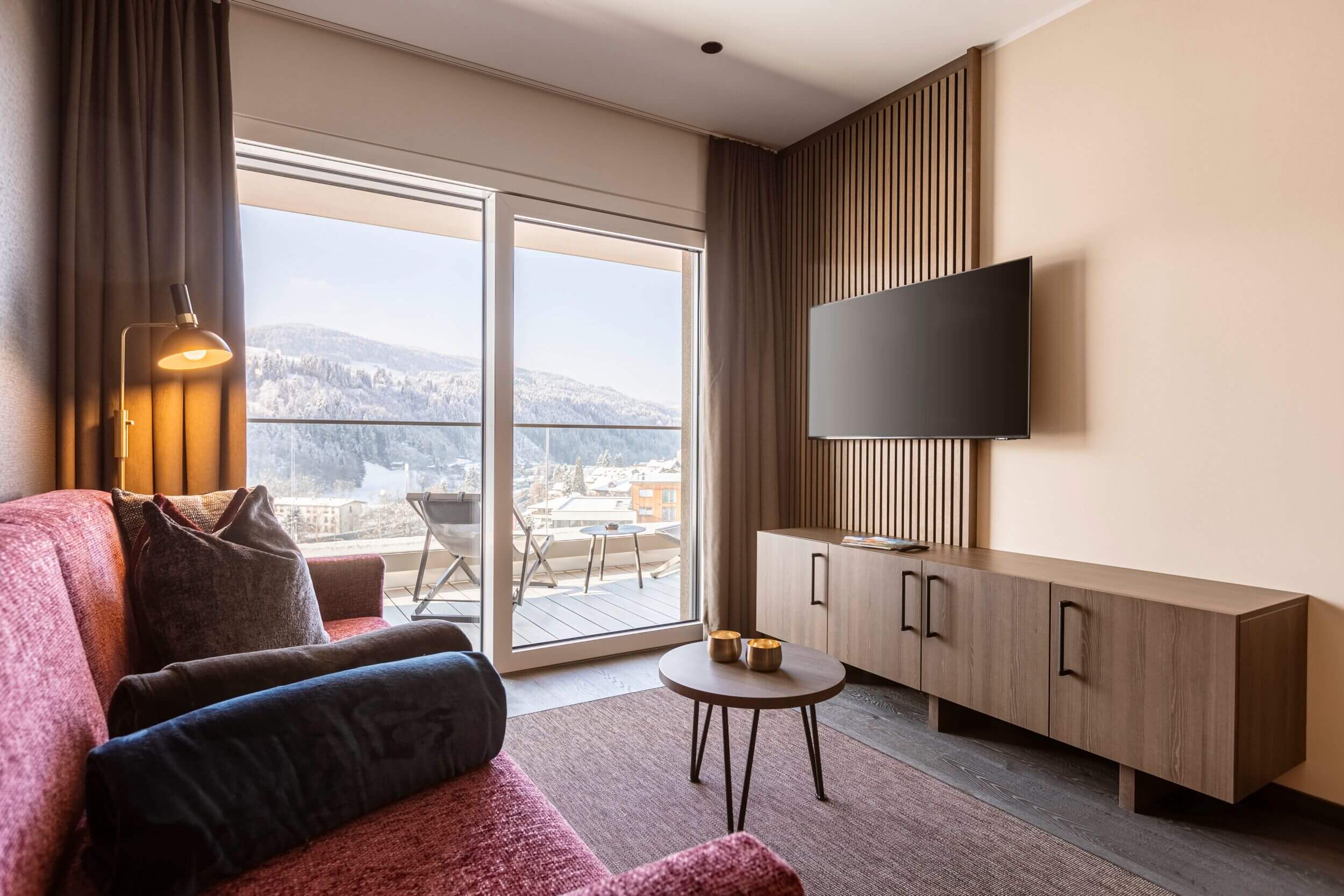 The 9 luxurious holiday apartments of our Brixental Suites Hopfgarten, located right by the slopes of SkiWelt Wilder Kaiser-Brixental, are distinguished by their modern and cozy interior décor. Guests will find complete comfort in living spaces ranging from 39 to 86 square meters, with up to 2 bedrooms. All 5 categories of apartments feature either a private balcony or terrace, affording views of the majestic Kitzbühel Alps. Whether in a studio or an apartment, your relaxation is always assured.
