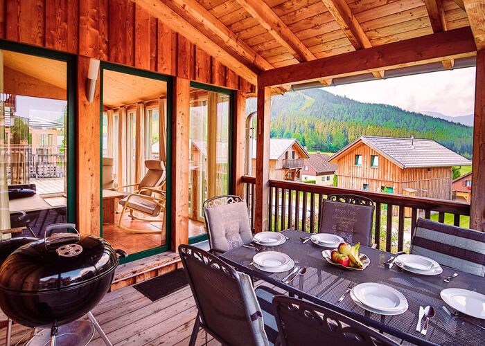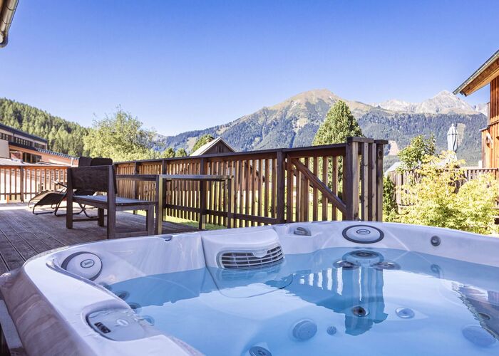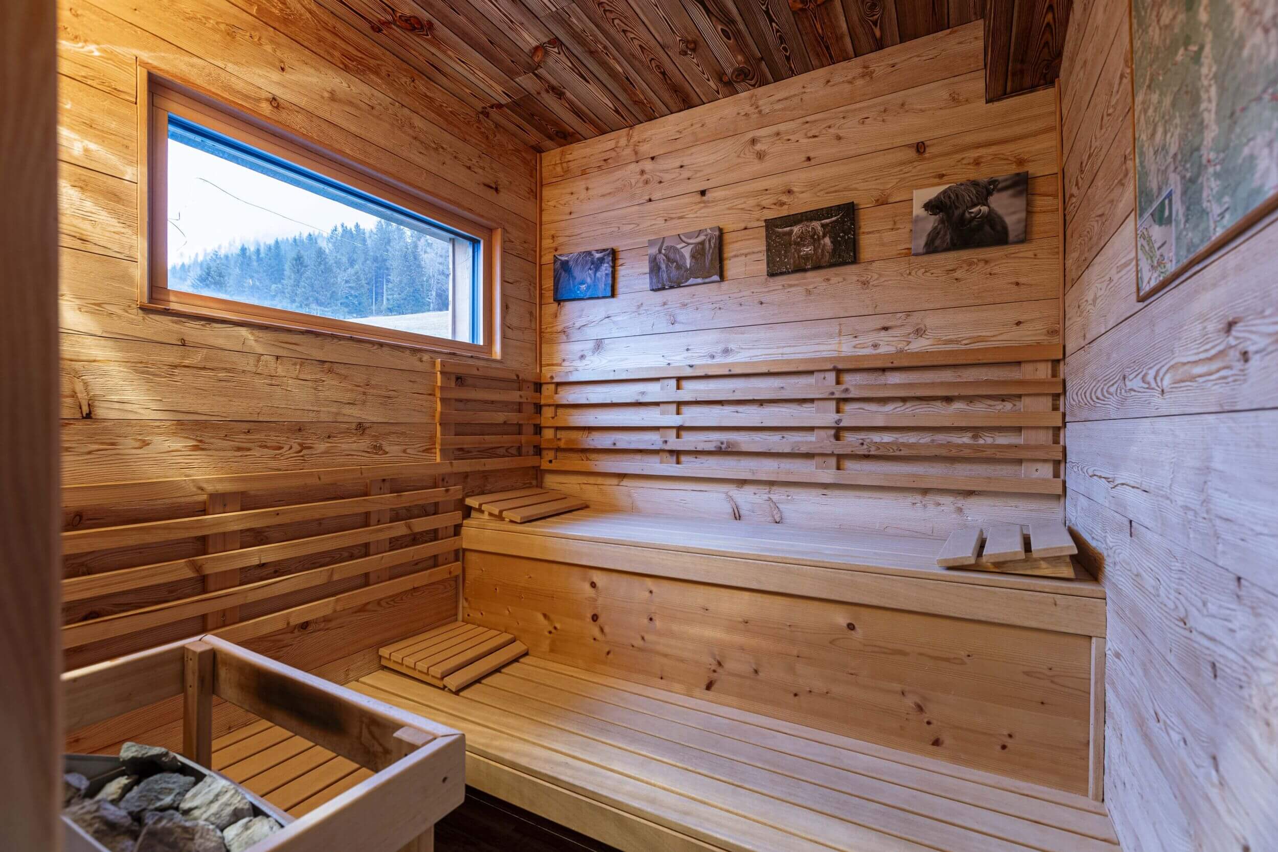 Viele Chalets sind mit einem privaten Wellnessbereich ausgestattet. Nach einer Wanderung oder Skitour kannst du in der Sauna, Infrarotkabine oder im Whirlpool den Tag entspannt ausklingen lassen. Vom Whirlpool auf der Terrasse aus hast du den Triebenstein bestens im Blick. Genieße Erholung nach deinem Rhythmus, ohne Zeitdruck und ganz privat.