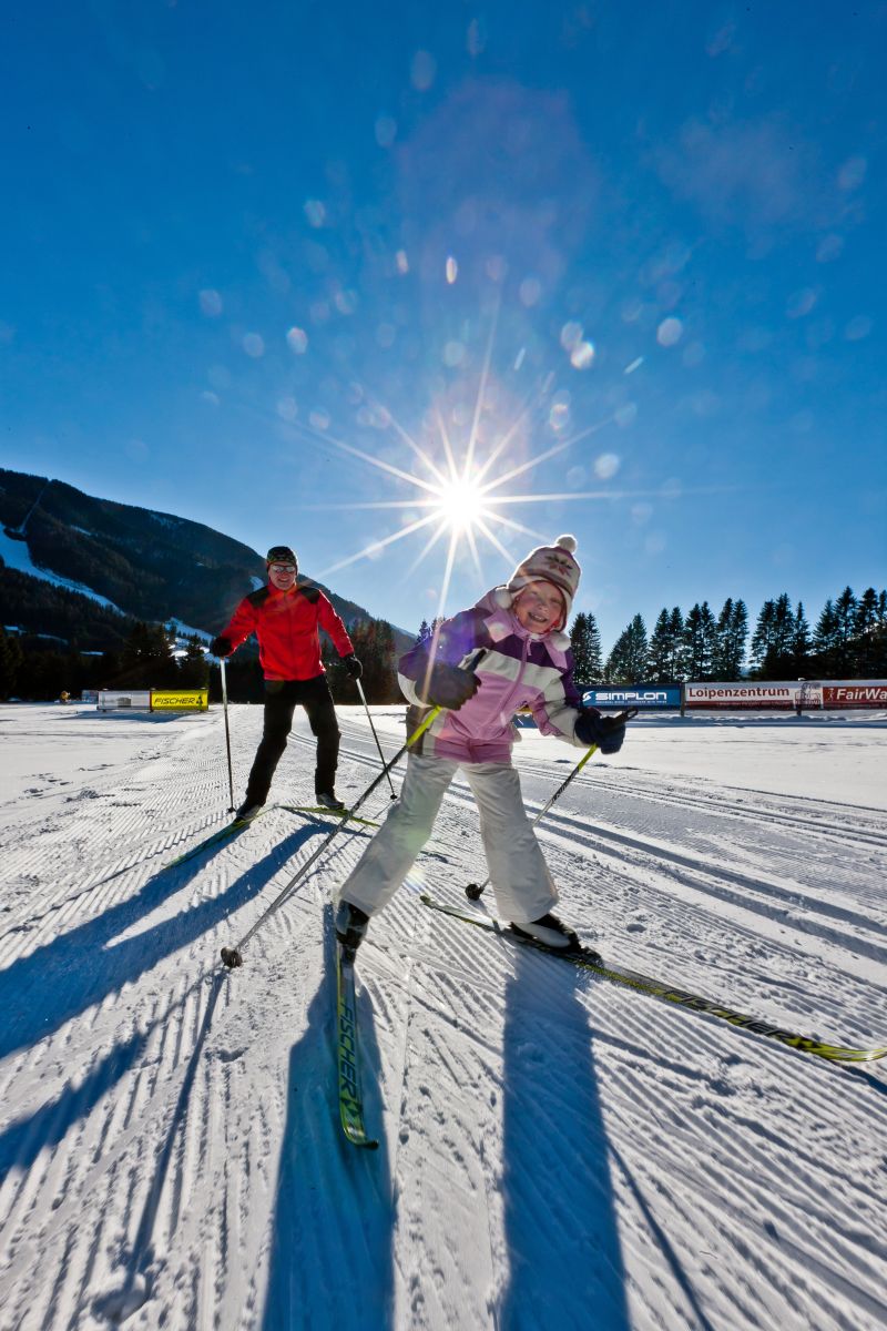 Was auch an den Loipen besonders geschätzt wird: keine Massen an Langläufern, kein Anstehen. Pures Wintervergnügen. Viel Platz. Die Möglichkeit, in seinem eigenen Tempo die Landschaft zu erkunden, diesen etwas anderen, ruhigen Wintersportort in der Steiermark bewusst zu erleben.