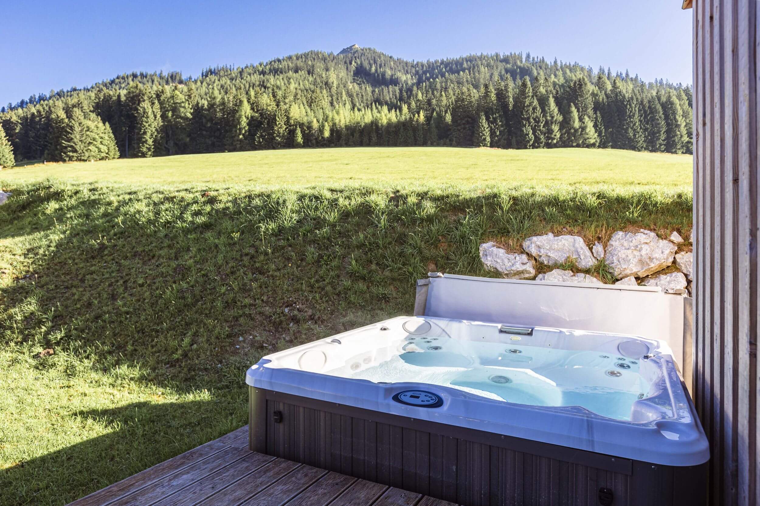 Die moderne Ausstattung kombiniert mit der nachhaltigen Holzbauweise sorgen für ein angenehmes Wohnambiente. Die meisten Chalets in Hohentauern verfügen zudem über einen Private-Spa. Nach einer Skitour im Winter verhilft eine Auszeit in der Sauna oder im Whirlpool zu neuen Kräften. Den Blick hinaus in die Berge der Steiermark schweifen und dabei die Seele baumeln lassen – viele Urlauber verlieren sich während des Entspannens im Whirlpool in Gedanken und träumen sich in eine andere Welt.