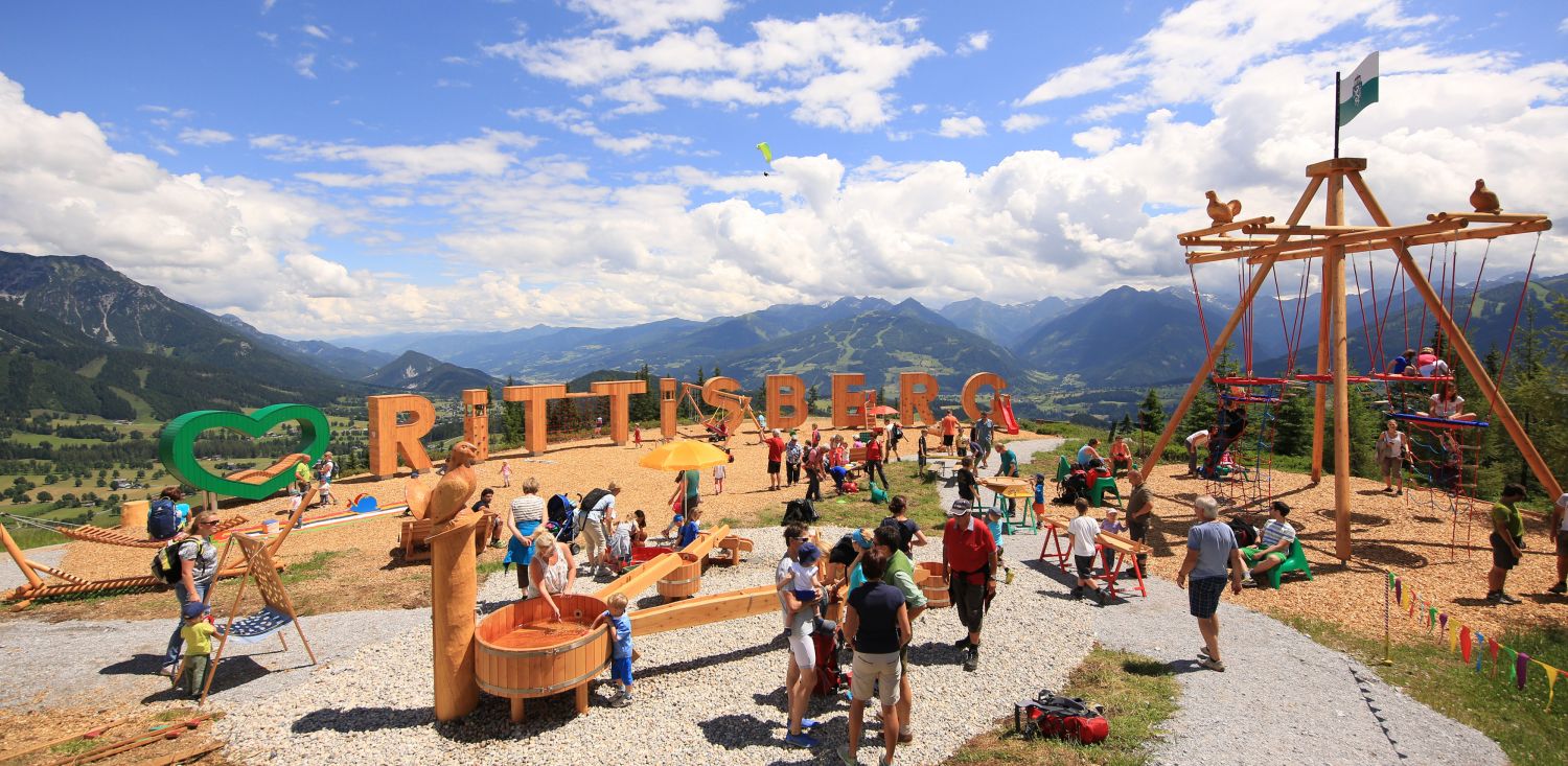 In ca. 15 Autominuten von Ihrem Apartment in Schladming aus erreichen Sie den Ausflugsberg Rittisberg – ein schönes Ausflugsziel für die gesamte Familie. Wanderwege wie der Märchenweg oder der Wurzelweg machen das Wandern auch für Kinder spannend und kurzweilig. Vom „Ramsau Beach“ führt ein Barfuss Parcours bis zum Rittisstadl. Da heißt es: Raus aus den Schuhen und „bloashaxat“, also barfuss, weiter. An 30 Stationen bieten Marmor, Sand, Kies, Holz oder Rindenmulch eine natürliche Fußreflexzonenmassage – und Sie fühlen die Natur hautnah! Neben Höhenspielplatz und Flyline war mein Highlight die Fahrt mit dem Rittisberg Coaster. Bleibt die Frage, ob hier die Kinder oder die Papas mehr Spaß haben 😉 Bogenschießen und eine Fahrt mit dem Segway runden das Angebot auf dem Erlebnisberg ab. Der Rittisberg ist übrigens auch Schladming-Dachstein Sommercard Partner.