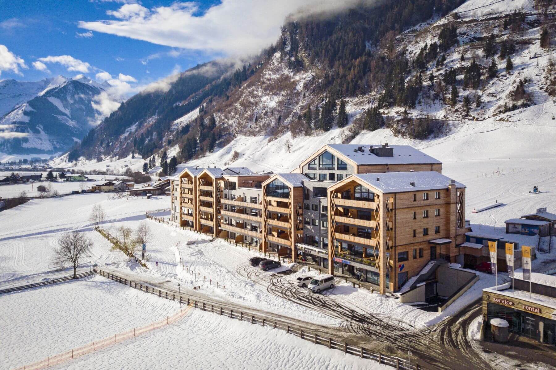 Das Premium-Apartmentresort überzeugt mit 79 hochwertigen Ferienwohnungen und seiner ausgezeichneten Lage direkt an der Piste sowie an der Talstation des Familienskigebietes Rauriser Hochalmbahn. Freuen Sie sich auf den 1.000 m² großen Wellnessbereich mit verschiedenen Saunen, beheiztem Infinitypool, Indoor-Kinderpool und alpinem Dachgarten. Neben den vollausgestatteten Küchen in den Apartments sorgt unser resorteigenes Restaurant für kulinarische Genussmomente: Ob Frühstück, Einkehrschwung zu Mittag oder Abendessen bei edlen Tropfen - hier bleiben keine Wünsche offen. Die Nationalpark Sommercard ist außerdem inklusive.