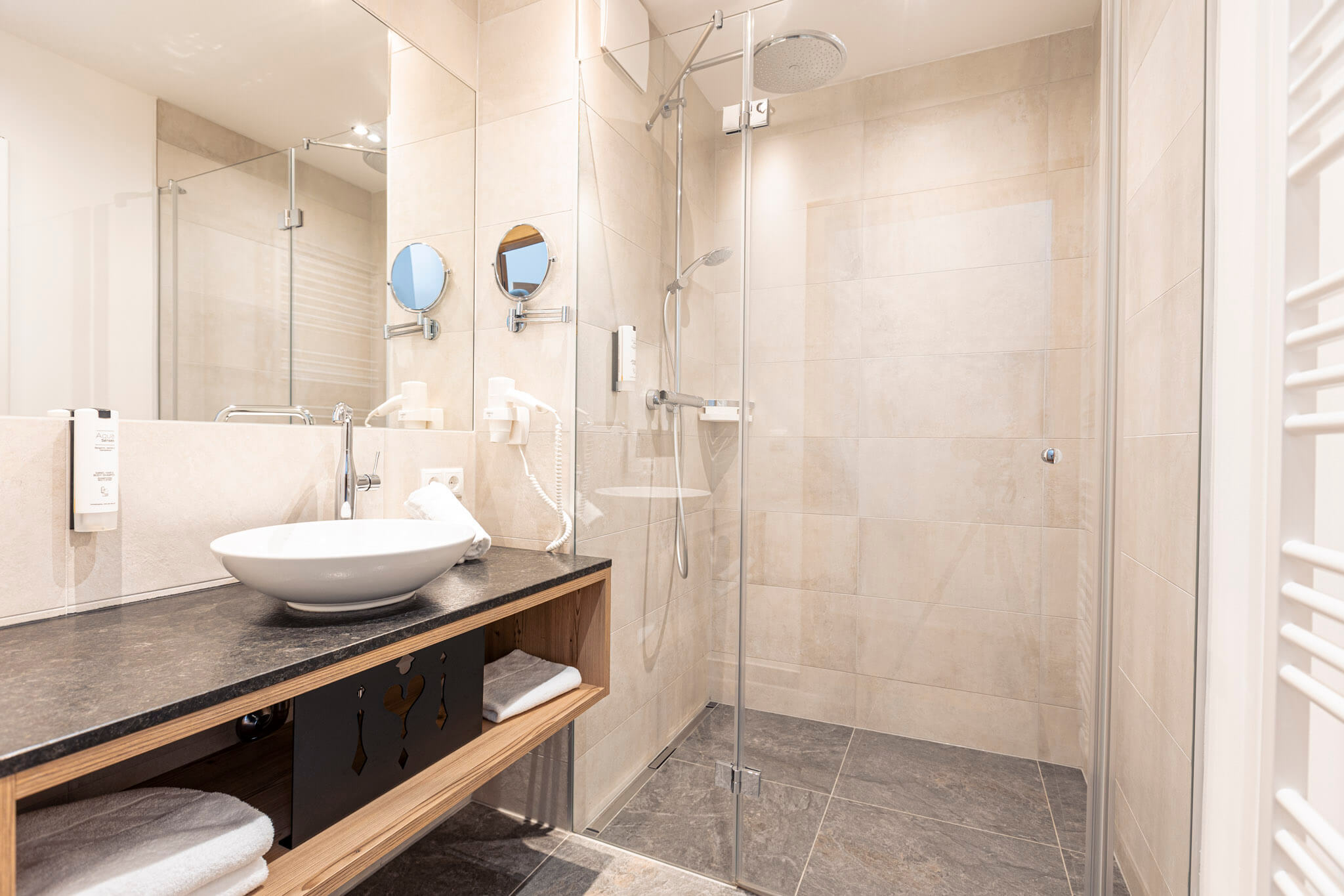 Wirklich ein Hotel, um sich rundherum wohlzufühlen - von der ersten Minute an. Die Lage ist ein Traum, direkt an der Talstation der Bergalmbahn. An der Rezeption wurden wir von Jakob und Sebastian sehr herzlich begrüßt, sie waren sehr bemüht und gaben uns viele gute Tipps zu Ausflugszielen. Und auch der Hausmeister war sehr hilfsbereit und freundlich. Unsere Zimmer war sehr geräumig und liebevoll eingerichtet, außerdem auch top ausgestattet - vor allem die Küche. 2 Kaffeemaschinen und ein Geschirrspüler waren mein persönliches Highlight. In den Betten und auch auf der Couch haben wir alle sehr gut geschlafen. Für unsere Kinder war das Highlight der tolle Pool und der Fitnessraum! Der Saunabereich hat ebenfalls keine Wünsche offen gelassen. Wir hatten eine sehr schöne, erholsame Zeit!