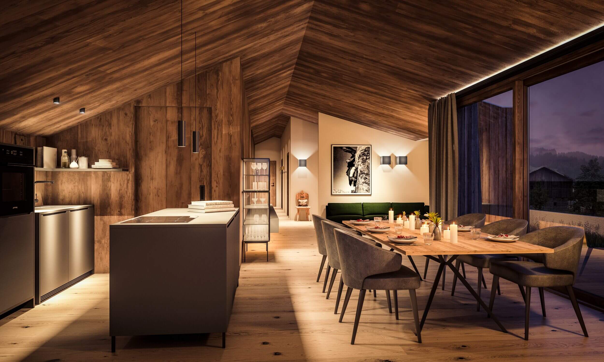 Nur 15 Autominuten von Kitzbühel entfernt liegt das Chalet 104 Westendorf im Brixental mit Ferienwohnungen für bis zu 6 Personen und 3 Schlafzimmern. Einige Einheiten sind mit einer privaten Infrarotsauna ausgestattet, das Penthouse verfügt über einen bepflanzten Dachgarten mit Rundumblick über das Brixental und die Kitzbüheler Alpen. Daneben punkten die Ferienwohnungen auch mit ihrem ästhetischen Interior Design: So tragen hochwertige Materialien sowie ein lichtdurchflutetes und offenes Wohnkonzept zum exklusiven Wohlfühlambiente bei.