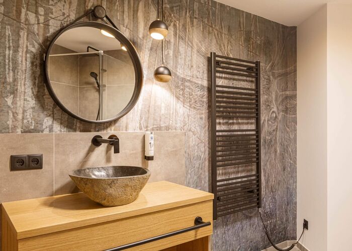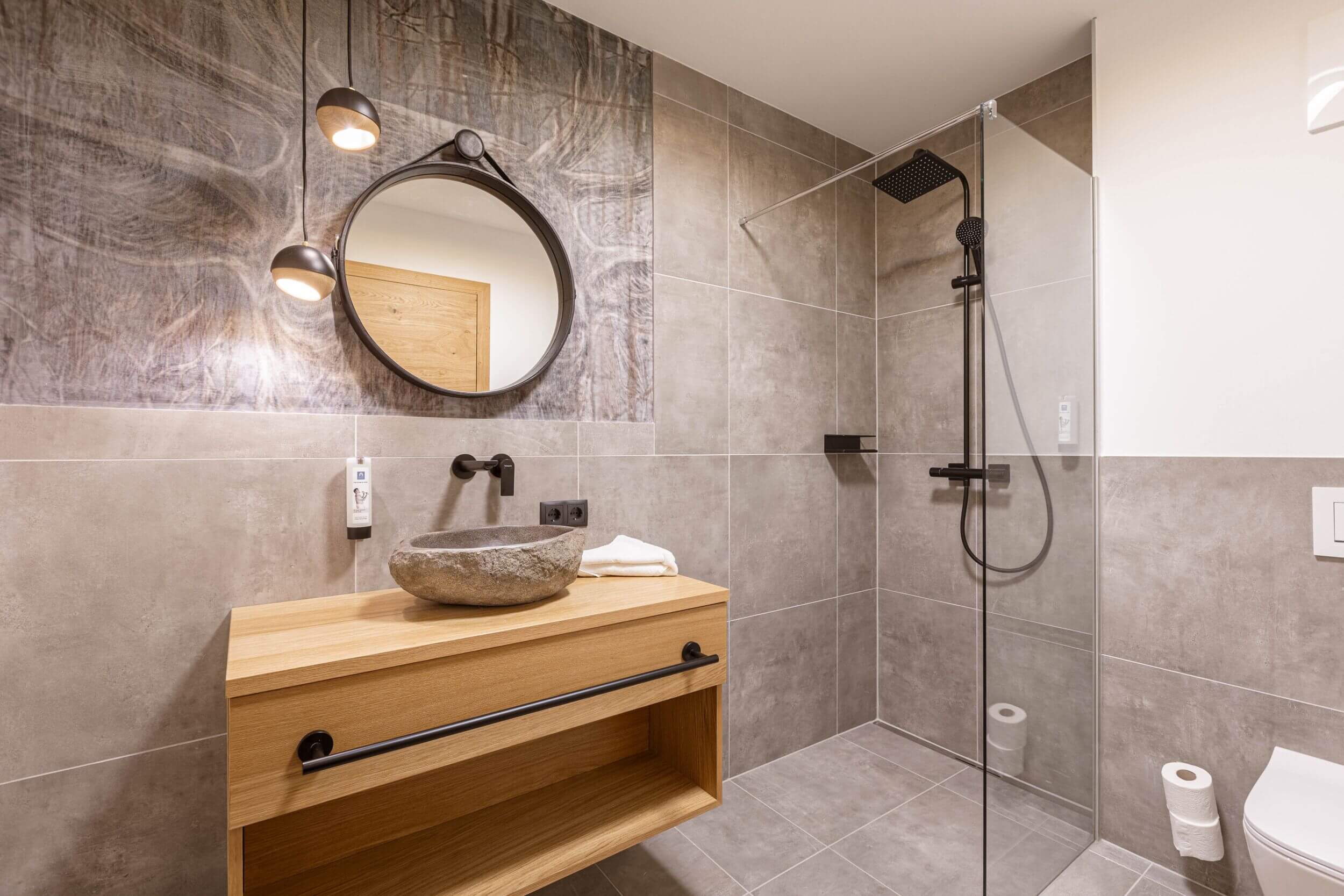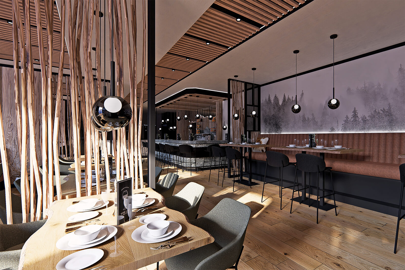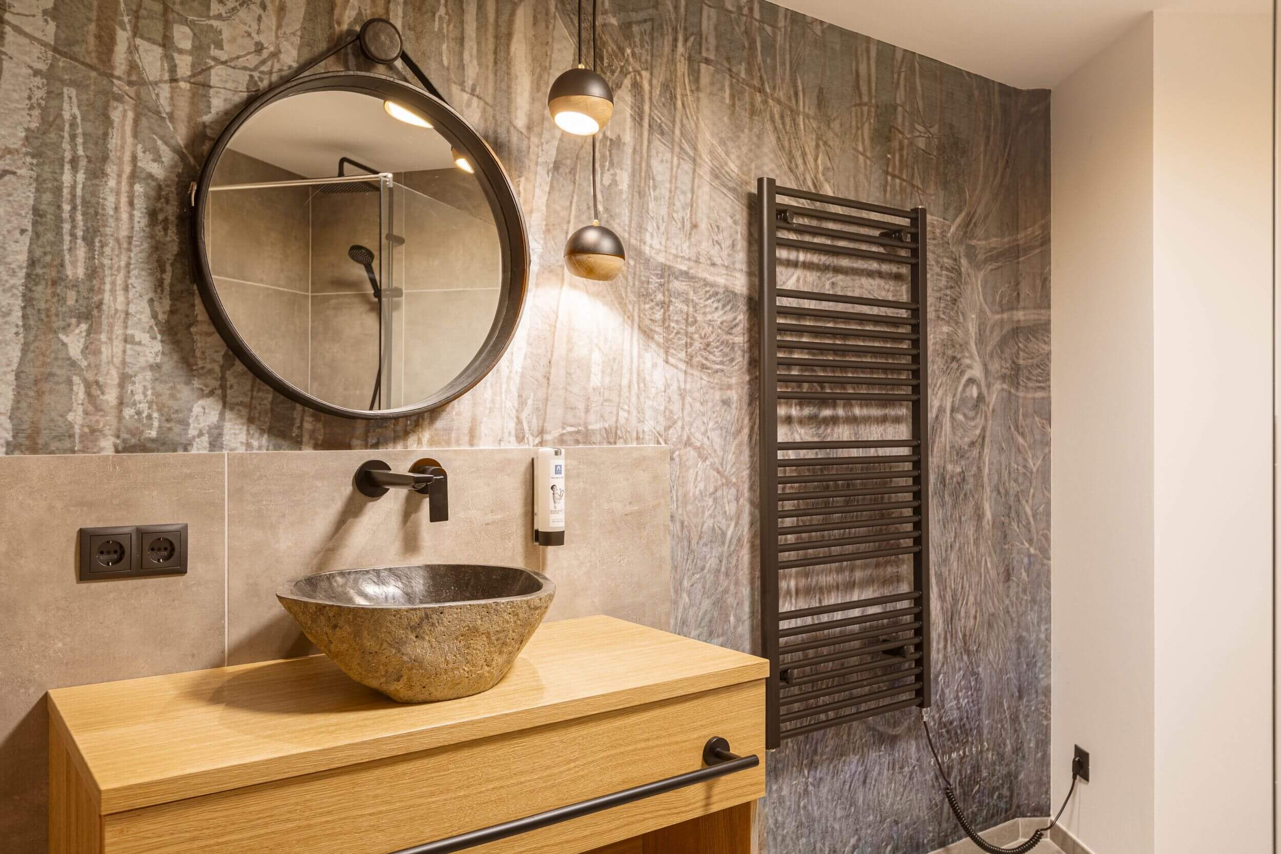Bei der Einrichtung der Ferienwohnungen wurde großer Wert auf hochwertige Materialien gelegt: komfortable Boxspringbetten, voll ausgestattete Einbauküchen, gemütliche Sofas und moderne Tapeten schaffen ein edles Wohngefühl. Ein besonders harmonisches Ambiente, das sich auch im Wellnessbereich und im Restaurant ALPS KITCHEN wiederfindet.