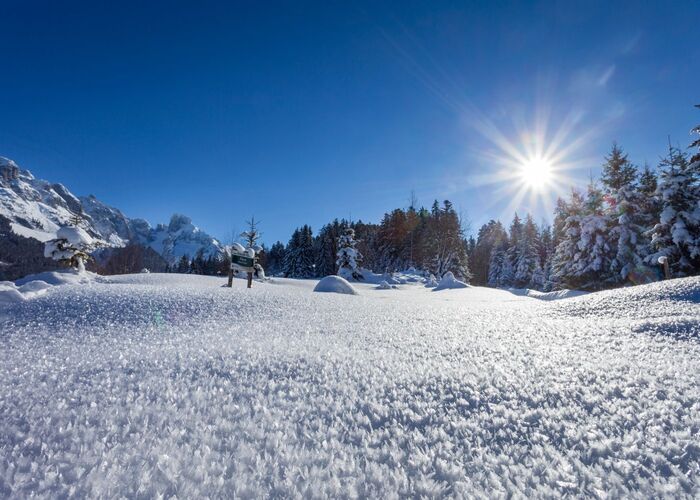 Die Lage zwischen Tennengebirge und Dachstein Massiv schafft die ideale Basis für zahlreiche Outdoor-Aktivitäten. Im Winter erwarten dich 130 gespurte Langlaufkilometer im Lammertal und die Skigebiete St. Martin, Dachstein West sowie Ski Amadé. Der Skibus in der Region Dachstein West ist kostenlos.