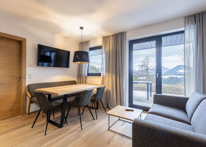 Der Badesee Seepark sowie das familienfreundliche und schneesichere Skigebiet St. Martin sind nur 2 km entfernt, die Erlebnis-Therme Amadé rund 16 km. Deine Ski- und Snowboardausrüstung kannst du sicher im Skiraum des Resorts lagern.