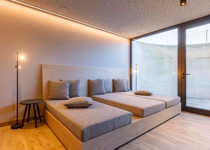 Nach Wanderungen, Skitagen oder Radtouren ist der gemeinschaftliche Wellnessbereich der richtige Ort, um ausgiebig zu entspannen. Hierfür stehen dir eine Finnische Sauna, eine Themensauna, eine Regenerationsdusche und ein Ruheraum mit Blick ins Grüne zur Verfügung.