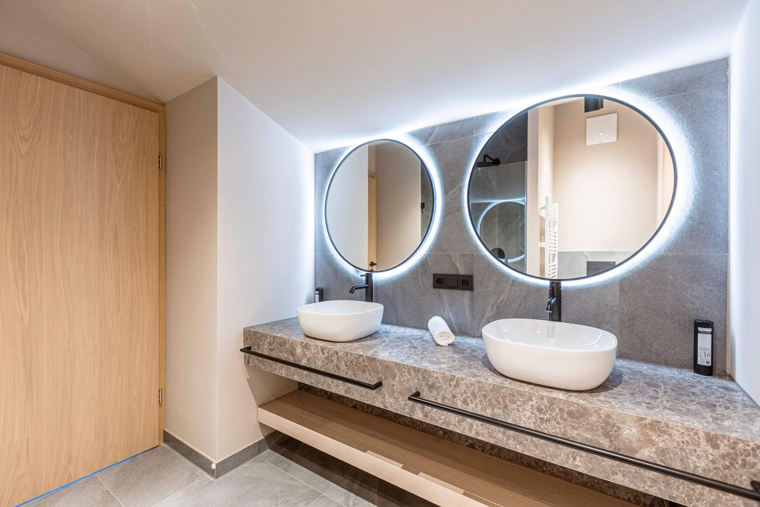 Im Wellnessbereich kannst du dich in den verschiedenen Saunen entspannt zurücklehnen. Der Skiraum mit direktem Zugang zur Tiefgarage sowie ein Bike-Keller mit E-Bike-Ladestation sorgen für praktische Abläufe im Alltag. Familien schätzen den großen Spielplatz mit Rutsche, Wippe, Sandkasten und Koordinationstrail direkt neben dem Resort. Das benachbarte Bichlachbad erreichst du in wenigen Minuten zu Fuß.