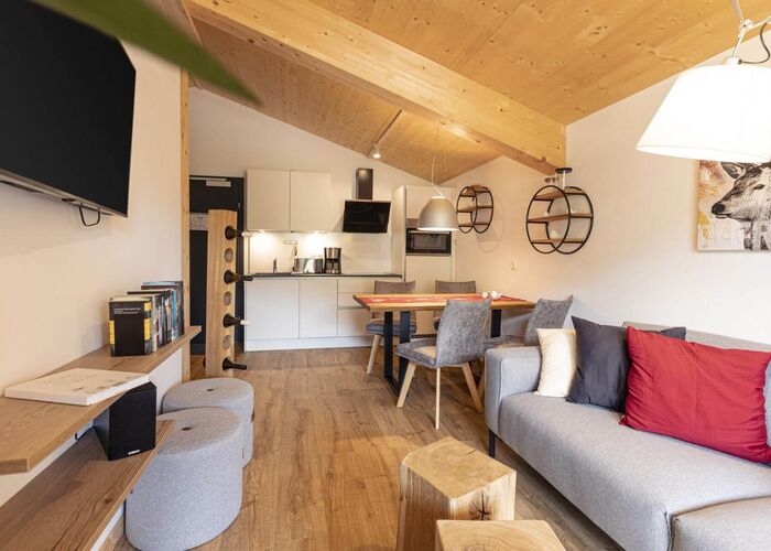 Dank der voll ausgestatteten Küche bist du flexibel in der Selbstversorgung, während private Infrarotkabinen in ausgewählten Einheiten für zusätzlichen Urlaubsgenuss sorgen. Jedes Apartment verfügt über einen Balkon mit Bergblick – je nach Ausrichtung sogar direkt auf die Skipiste.