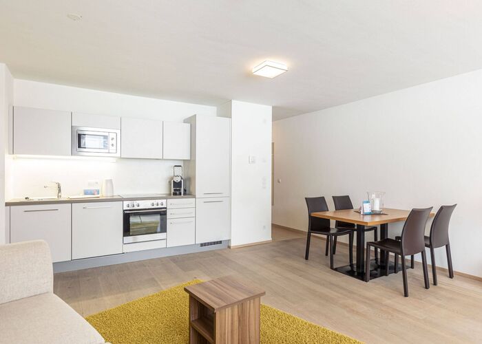 In der Tauernresidence Radstadt erwarten dich zahlreiche Annehmlichkeiten, die deinen Urlaub in der Salzburger Sportwelt besonders angenehm machen: Während Kinder am Spielplatz toben, kannst du Skipässe oder Eintritte für die nahegelegene Therme Amadé direkt an der Rezeption kaufen. Deine Sportausrüstung (Skier, Schuhe oder Bikes) bringst du im Skikeller unter, dein Auto parkt sicher in der Tiefgarage.
