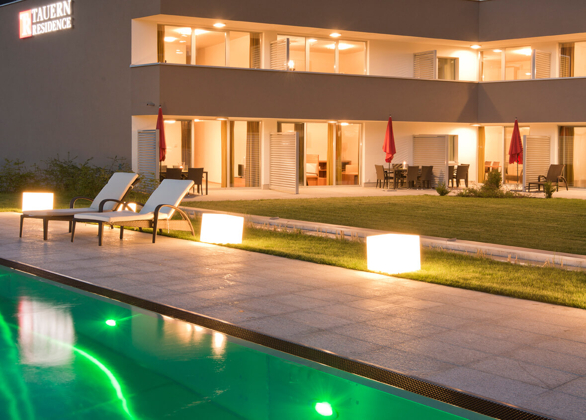 Ob Sie Entspannung nach einem anstrengenden Skitag, einer zehrenden Wanderung oder einfach nur einen Tag zum Abschalten benötigen, im Indoor-Wellnessbereich der Tauernresidence Radstadt können Sie richtig Dampf ablassen – sei es in der Finnischen Sauna, im Dampfbad oder in der Infrarotkabine. Um Körper, Geist und Seele völlig in Einklang zu bringen, strecken Sie Ihre Füße am besten im Ruheraum mit Panoramaterrasse aus. Auf der Überwasser-Massageliege, die den gesamten Stoffwechsel sowie die Durchblutung fördert, und den eigenen Fitnessgeräten lösen sich schlussendlich auch die letzten Verspannungen.