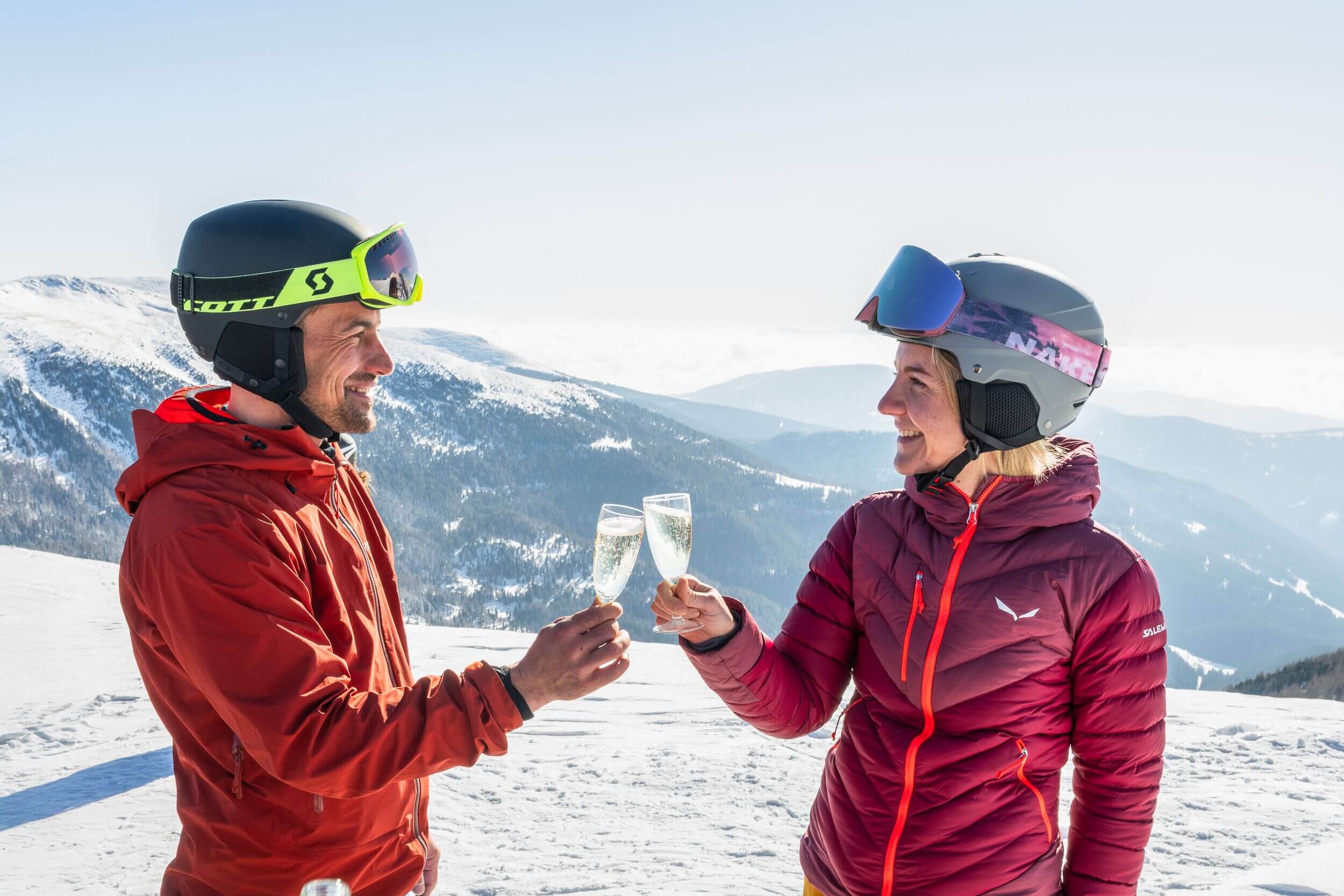 Im Winter präsentiert sich die Turracher Höhe als vielseitiges und schneesicheres Skigebiet mit bestens präparierten Pisten für jedes Niveau. Die Kornock-Familienabfahrt eignet sich für Kinder und Einsteiger, während erfahrene Skifahrer die sportlichen Abfahrten schätzen. Langlaufloipen und Winterwanderwege starten direkt in der Nähe deines Apartments. Ein besonderes Erlebnis ist das exklusive Sunrise Skiing mit Alm Butler: Frühe Schwünge auf frisch präparierten Pisten und ein gemütliches Frühstück in der Almhütte machen den Morgen zu etwas Besonderem.
