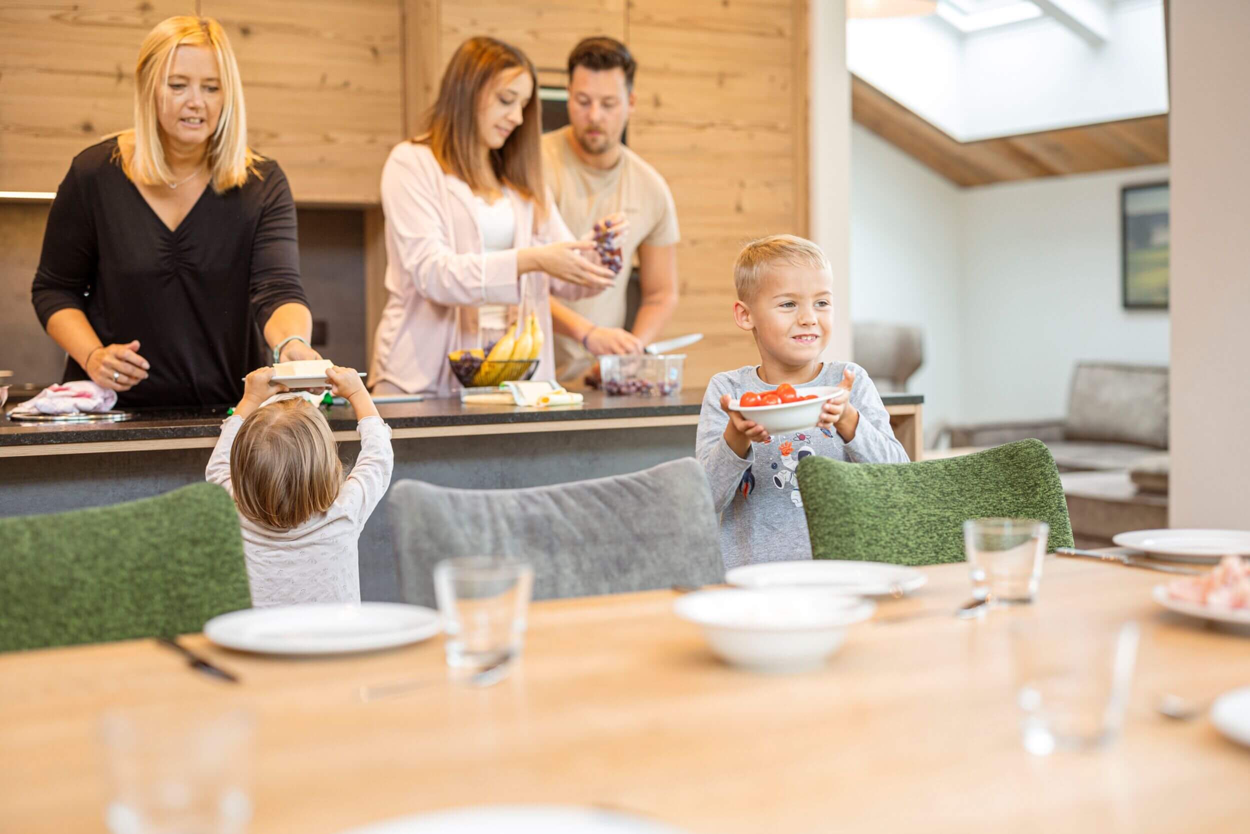 Im Gegensatz zum Hotelzimmer bietet eine Ferienwohnung oder ein Ferienhaus genügend Raum. Kinder, Eltern, Wander- und Skiklamotten – und sogar die Großeltern haben Platz.
